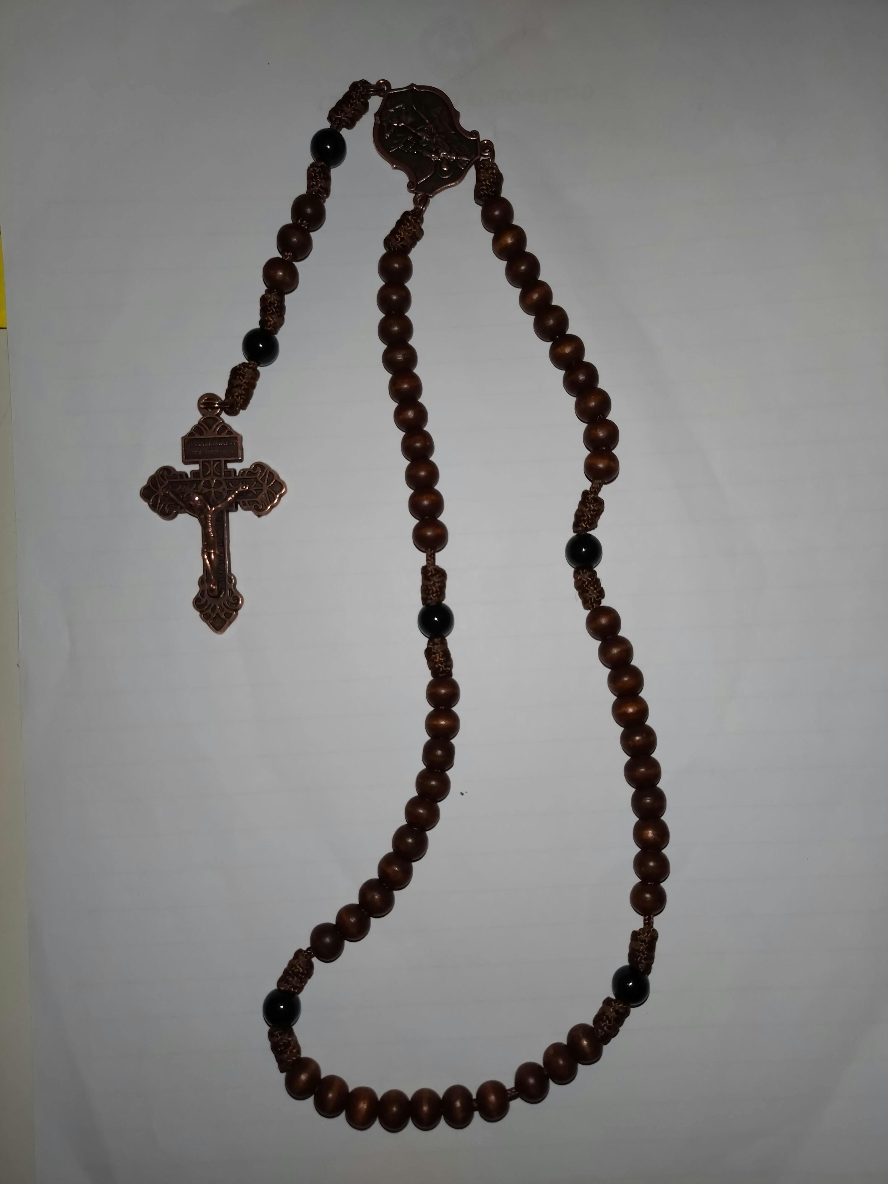 Rosenkrans i trä och onyx med Helige Mikael-medalj och Pardon-krucifix