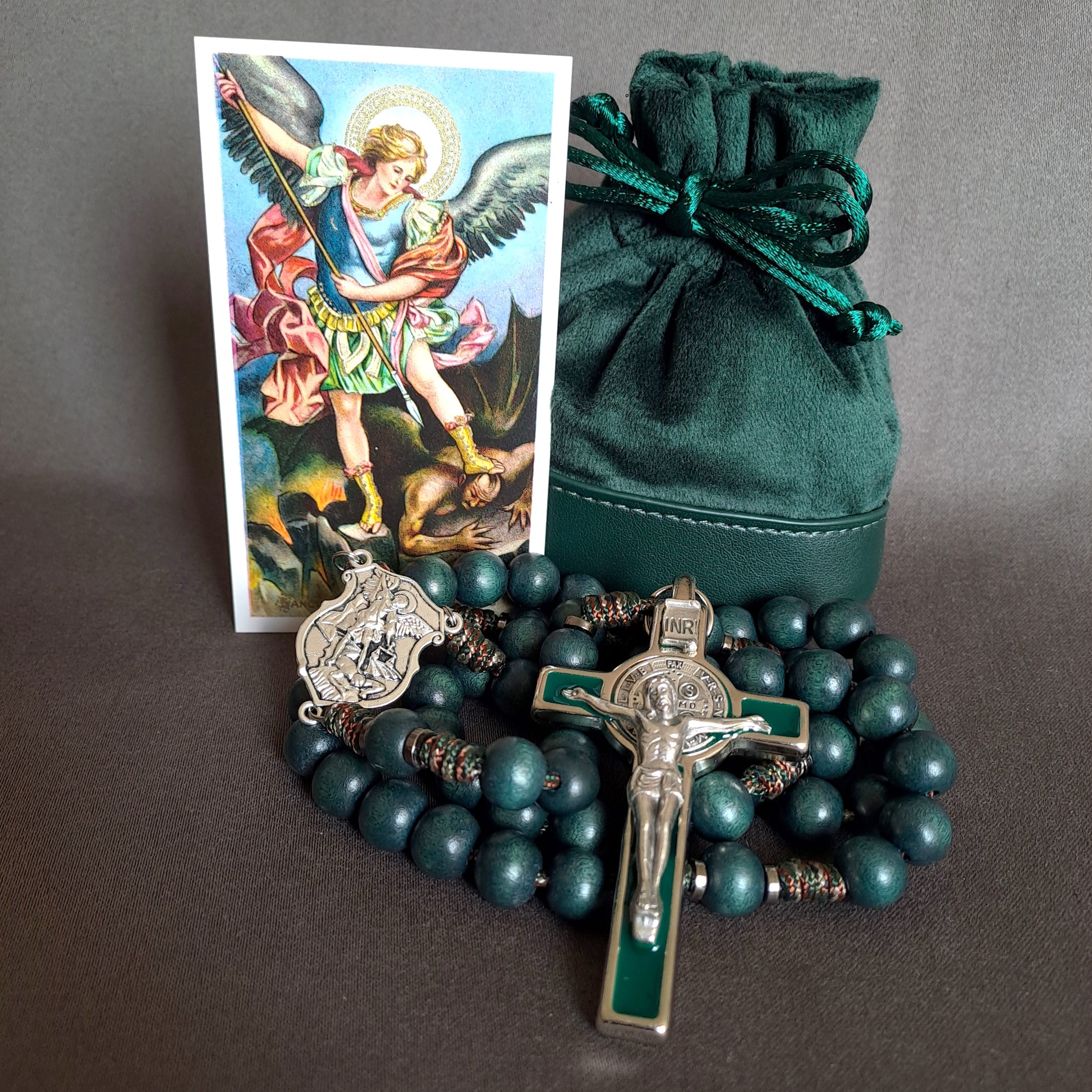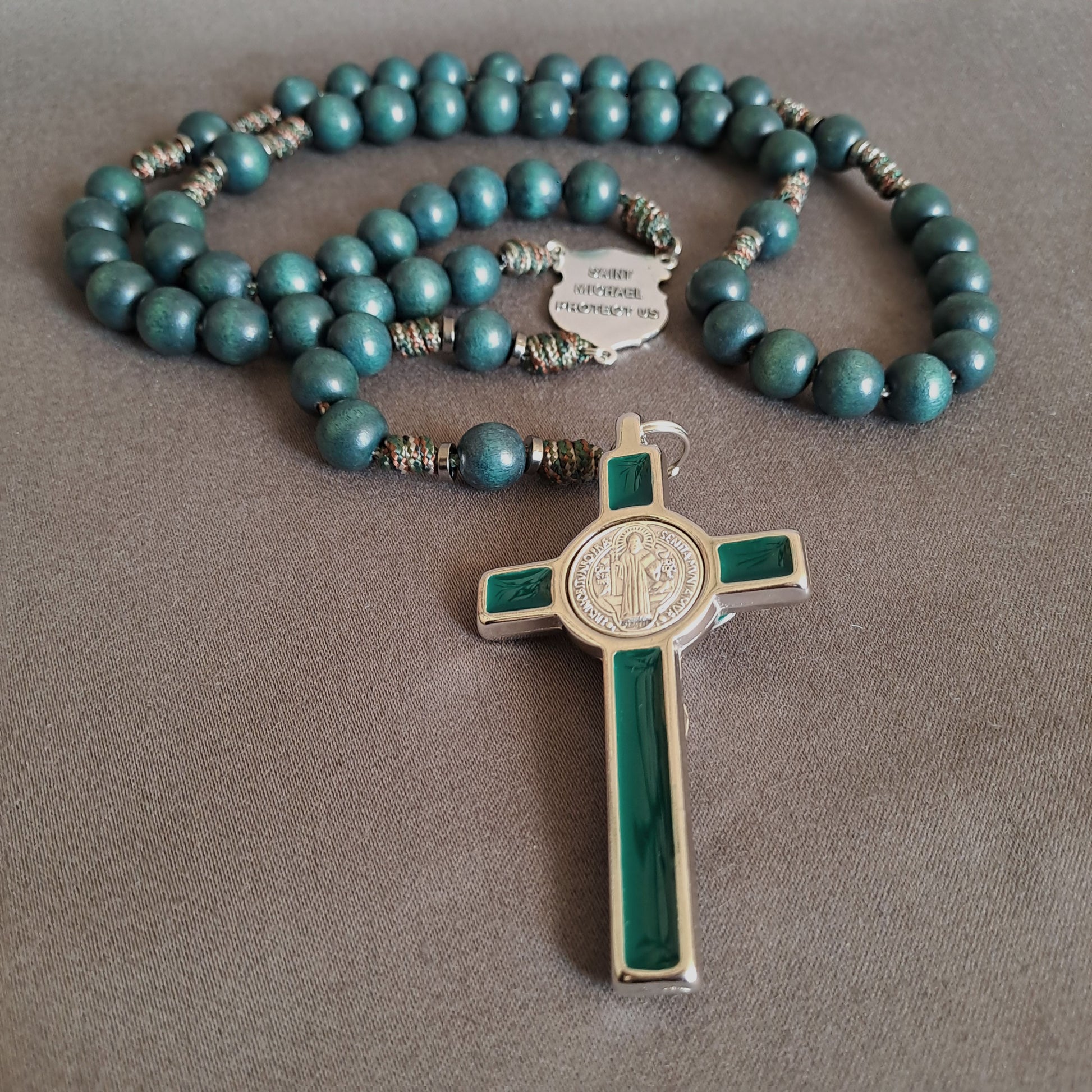 Grön Rosenkrans med Benedictus-krucifix och Helige Mikaels medaljong