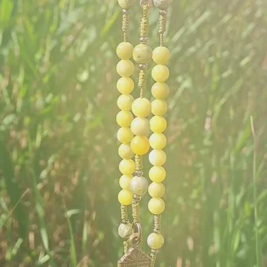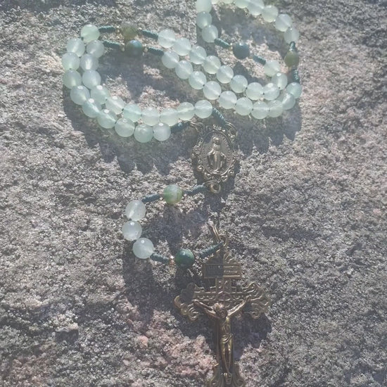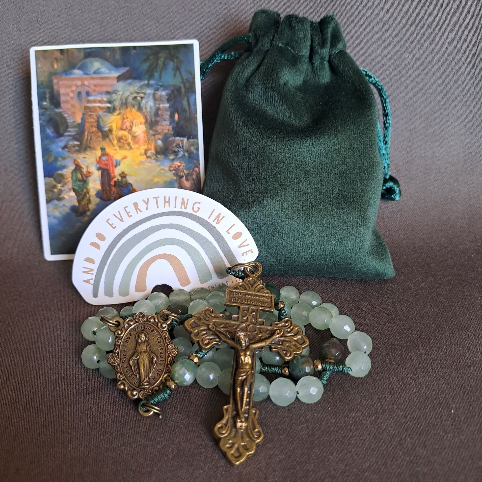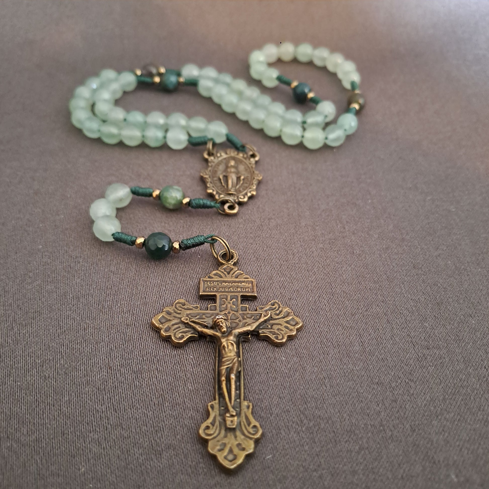 Den mjukt gröna aventurinen ger intryck av frid och harmoni, medan agaten tillför styrka och djup. Agat räknas till de ädelstenar som prydde prästens bröstsköld (2 Mos 28:19), och har i kristen tradition tolkats som en symbol för uthållighet, beskydd och andlig styrka.
